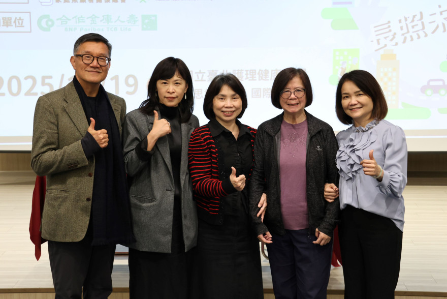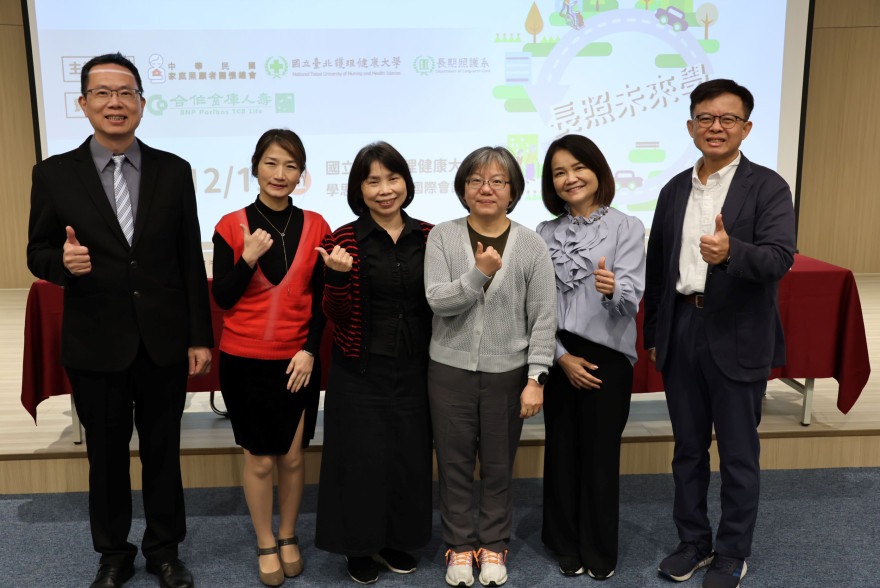 中華民國家庭照顧者關懷總會(家總)與國立臺北護理健康大學(國北護)長期照護系今(19)日假國立臺北護理健康大學學思樓國際會議廳共同舉辦「長照未來學:『共融照顧圈』的創新實踐」2025年度研討會暨第三屆家庭照顧者博碩士論文獎發表會。衛生福利部政務次長呂建德與家總理事長陳維萍、秘書長陳景寧、國立臺北護理健康大學長期照護系系主任陳正芬、合庫人壽副總經理唐宜立共同揭開序幕。