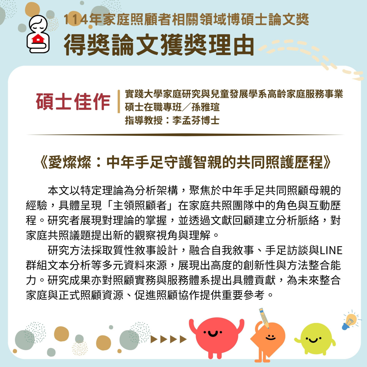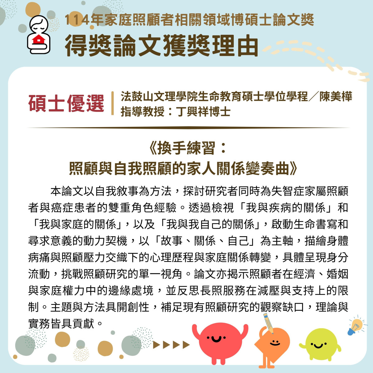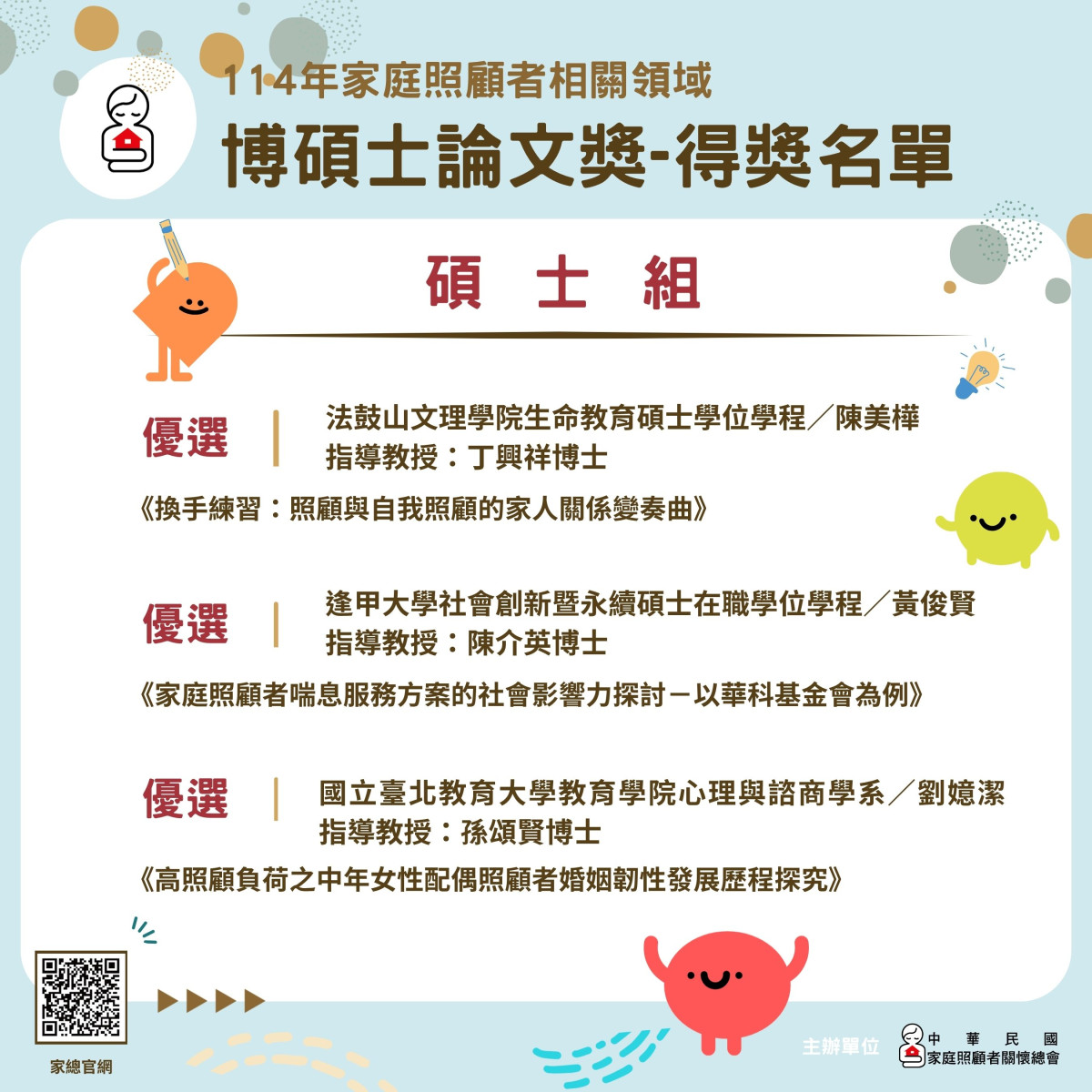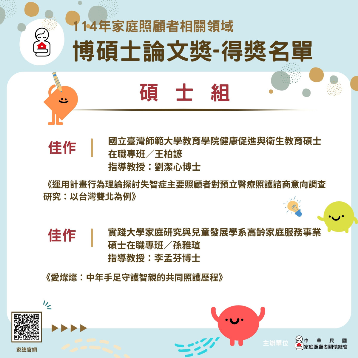 114年家庭照顧者相關領域博碩士論文獎得獎名單出爐!
