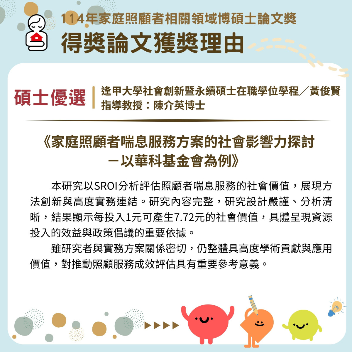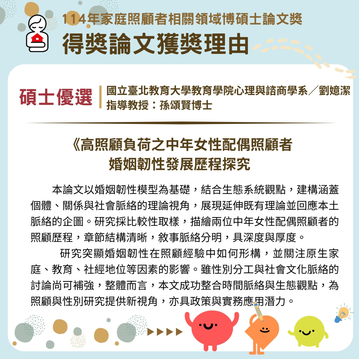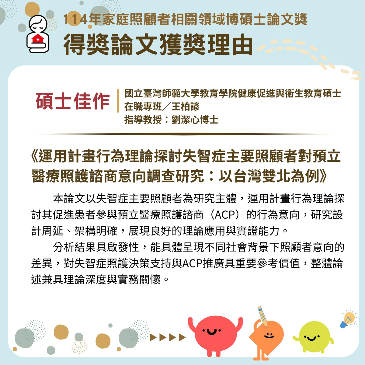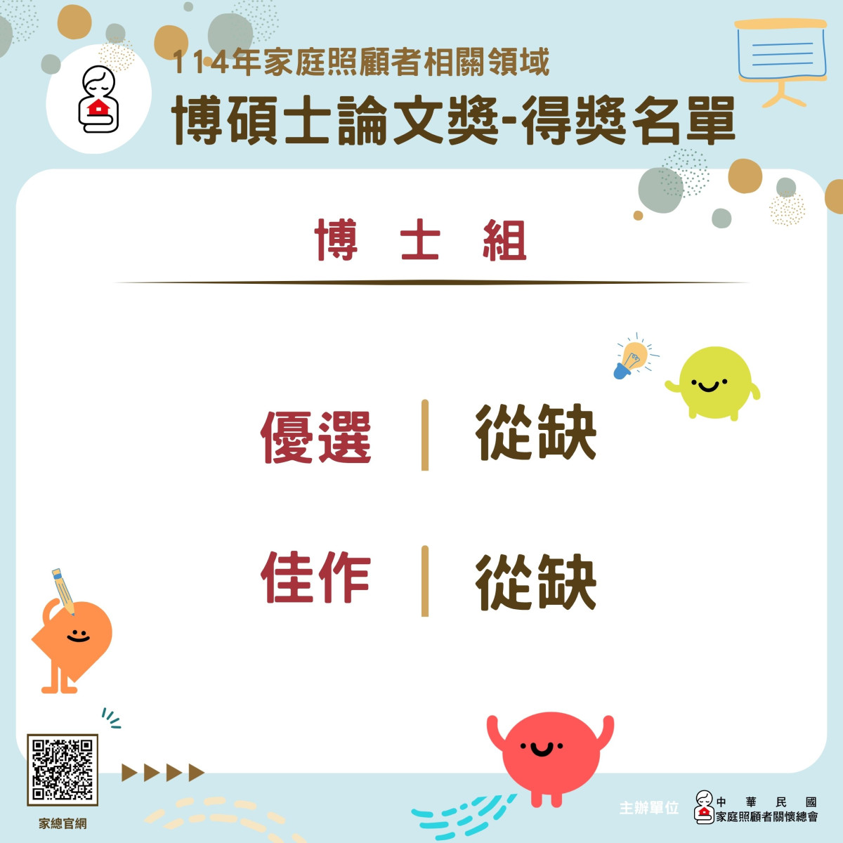 114年家庭照顧者相關領域博碩士論文獎得獎名單出爐!