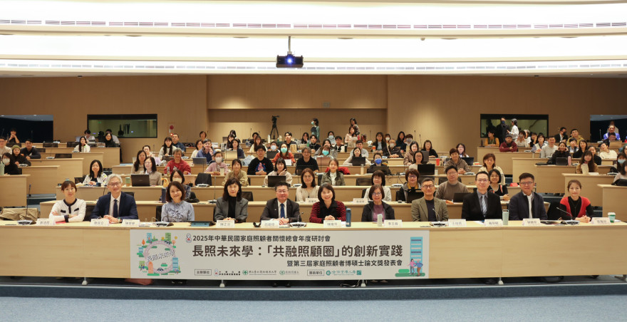 中華民國家庭照顧者關懷總會(家總)與國立臺北護理健康大學(國北護)長期照護系今(19)日假國立臺北護理健康大學學思樓國際會議廳共同舉辦「長照未來學:『共融照顧圈』的創新實踐」2025年度研討會暨第三屆家庭照顧者博碩士論文獎發表會。衛生福利部政務次長呂建德與家總理事長陳維萍、秘書長陳景寧、國立臺北護理健康大學長期照護系系主任陳正芬、合庫人壽副總經理唐宜立共同揭開序幕。