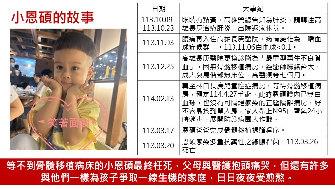 (經濟日報轉中央社) 3歲童等不到骨髓移植去世 立委籲調整健保資源分配